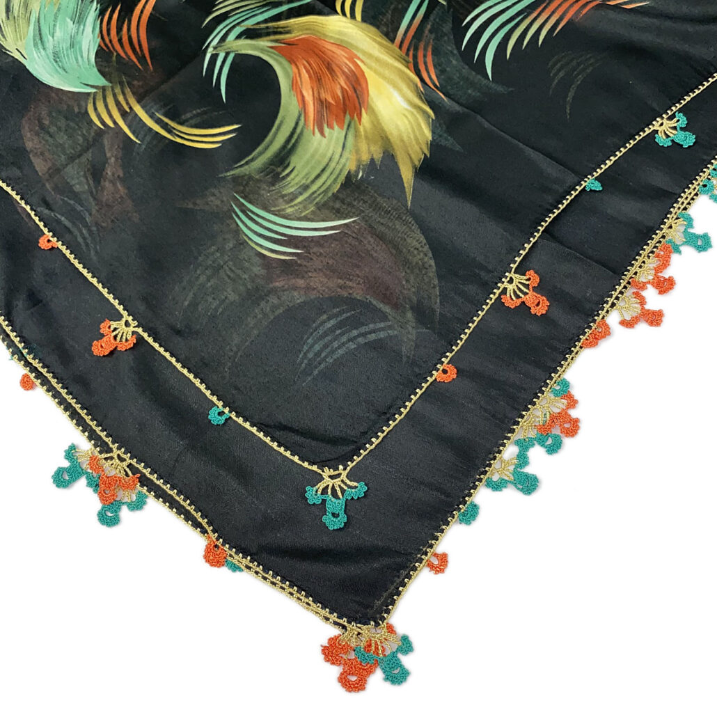 Sei in: Home / FOULARD quadrato seta-sintetico con applicazioni uncinetto / SEM-103N08