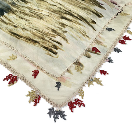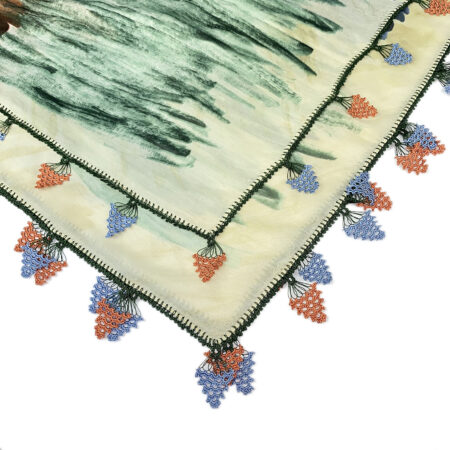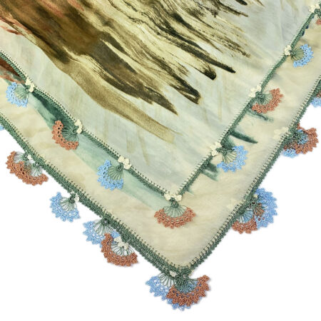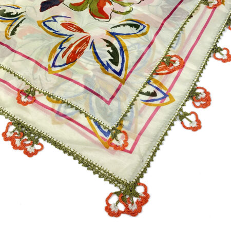 • FOULARD quadrato seta-sintetico con applicazioni uncinetto