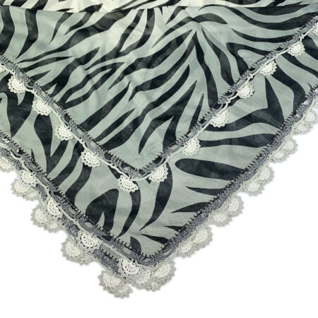 FOULARD quadrato seta-sintetico con applicazioni uncinetto